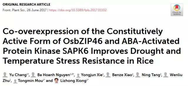 轉(zhuǎn)化基因:OsbZIP46CA1(bZIP轉(zhuǎn)錄因子OsbZIP46刪除負(fù)調(diào)控domainD)+ SAPK6(蛋白磷酸酶家族);