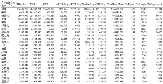熱點研究疾病數(shù)據(jù)統(tǒng)計(單位:Gbase)