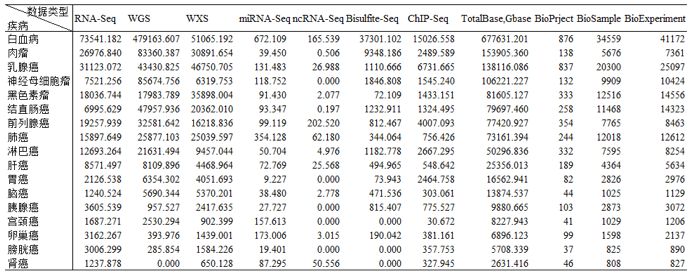 熱點癌癥數(shù)據(jù)統(tǒng)計(單位:Gbase)