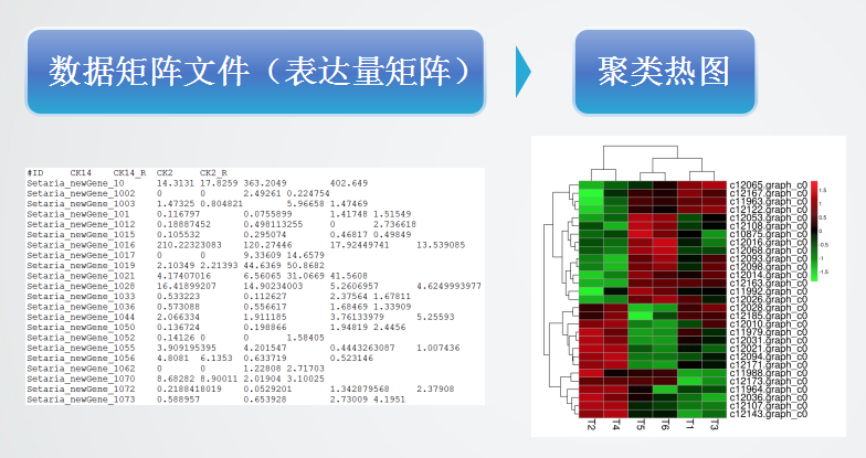 圖片與列表交互功能可實現對聚類熱圖中各個聚類模塊內基因ID及其表達量信息的提取,利用該交互功能得到的信息,結合云平臺上表達模式分析工具、基因功能分析工具及文件操作工具,可深入挖掘聚類熱圖上不同聚類模塊內基因集合的表達模式與功能信息。